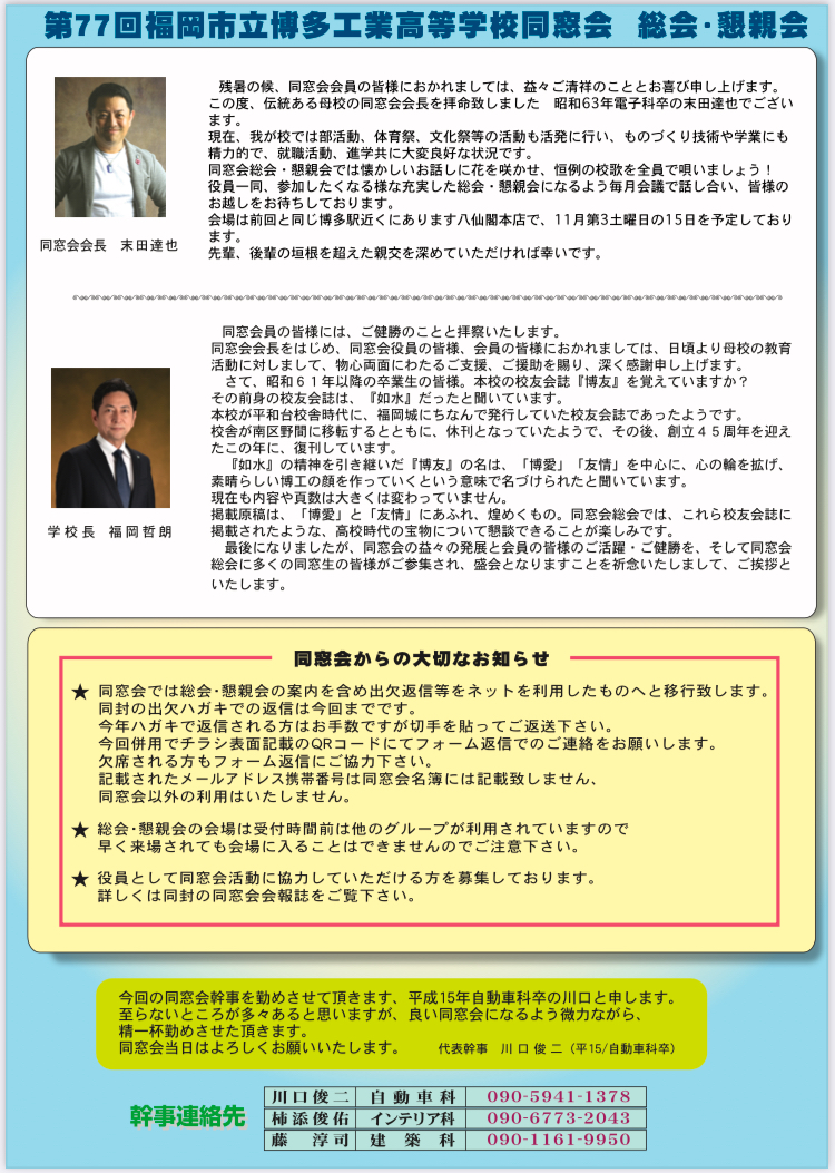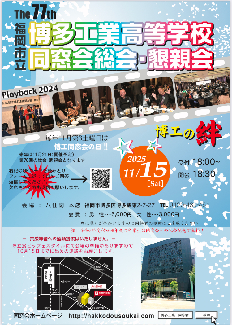 福岡市立博多工業高等学校を卒業された同窓生のためのホームページです
